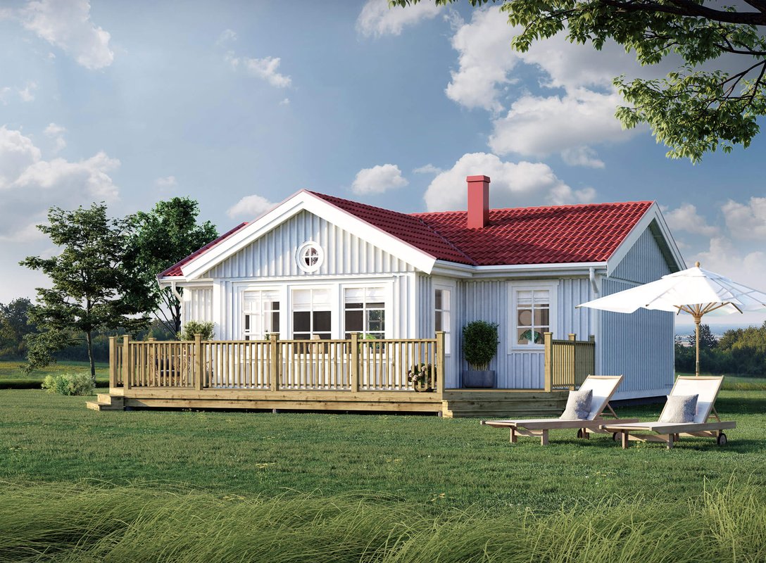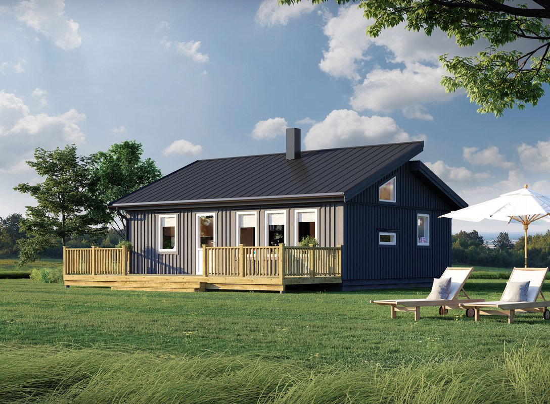 Med sina 70 smarta kvadratmeter erbjuder MÄJA 70 en perfekt balans mellan funktion och mysfaktor. Här finns tre sovrum, ett rymligt badrum och ett öppet kök/vardagsrum på 36 kvm, där umgänget står i centrum. De generösa fönstren med sina dörrpartier suddar ut gränsen mellan ute och inne och skapar en levande kontakt med naturen – oavsett årstid.