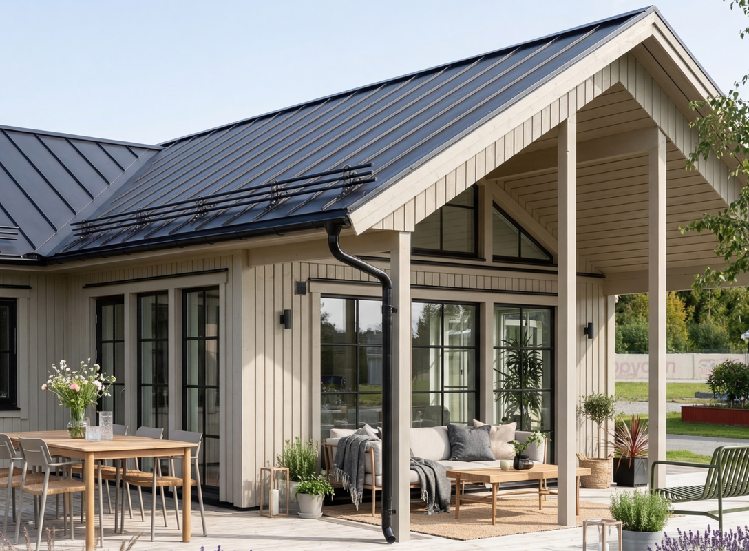 Här ser du hur huset ser ut från alla vinklar. Tycker du att fönsterna är för små eller vill du ha fler dörrar? Kom ihåg att du kan anpassa huset precis som du vill.