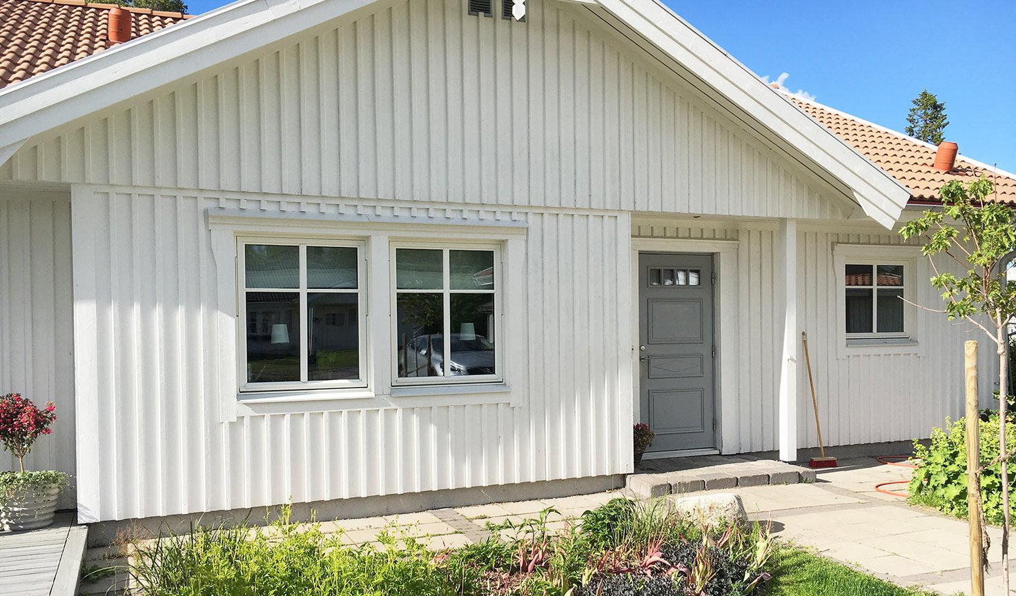 – Att Karl Johan jobbade borta och att barnen var så små då var det som avgjorde. Vi kände att vi inte ville lägga den stressen på oss själva genom att bygga själva, för vad hade hänt om barnen blivit sjuka under den tiden till exempel? Det kändes mycket enklare att välja nyckelfärdigt, något som vi absolut inte ångrat, berättar Outi.