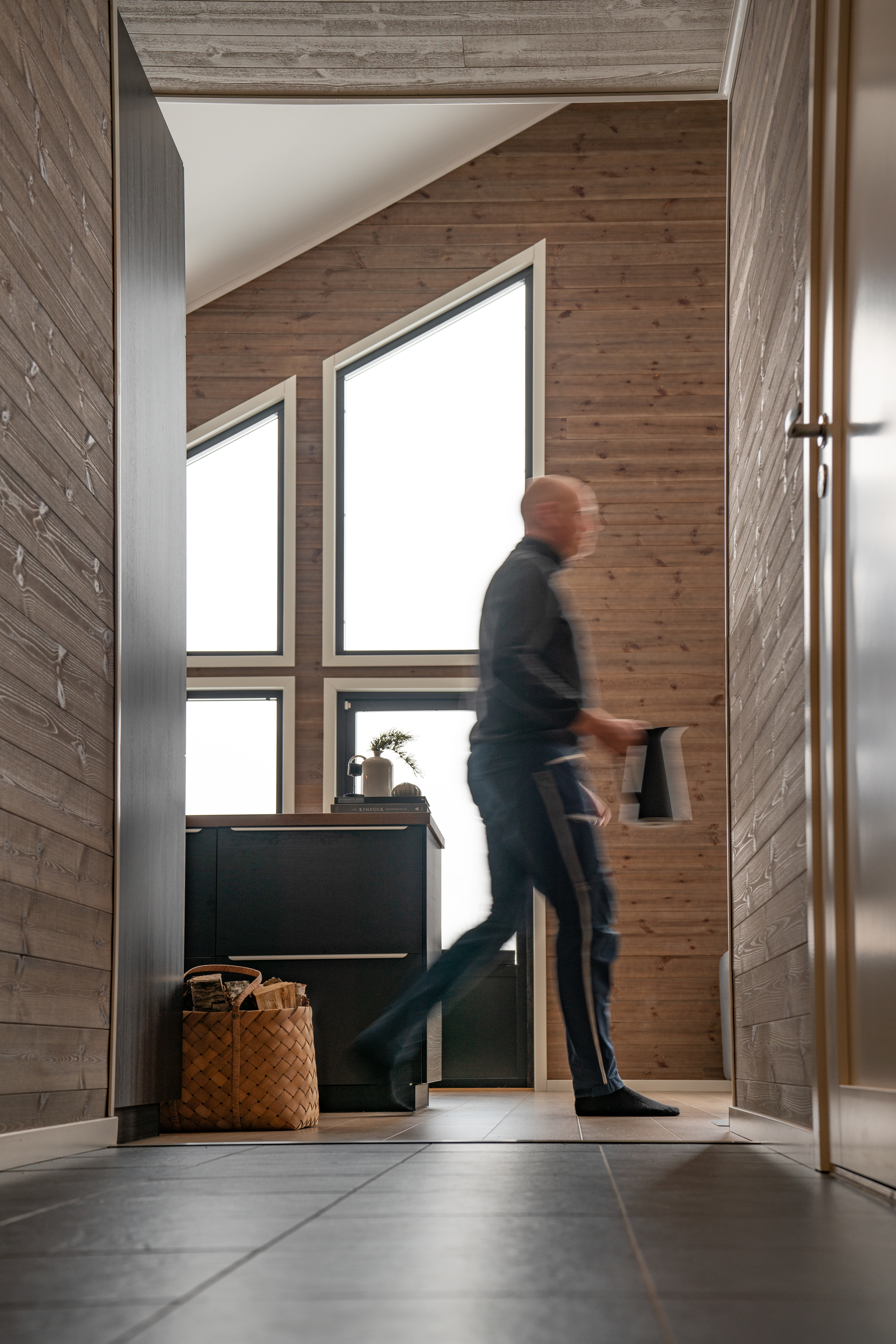 – Jag såg en bild på Instagram av en fjällstuga med precis den mörka panelen vi ville ha. Jag visade den för Skidstahus och de tog fram en liknande – det blev perfekt! säger Anita.
