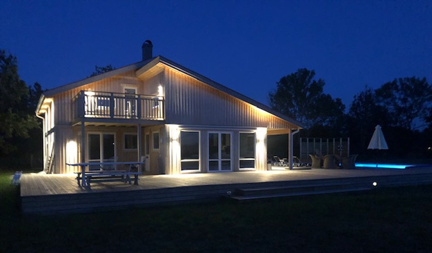 – Vi har fixat en del ytskikt invändigt själva därefter. Och utvändigt har vi till exempel byggt väg, förråd, pool, köksträdgård och 350 kvadratmeter trädäck. Men vi är inte helt klara än. Bygger man hus tror jag aldrig att man vill bli riktigt klar, skrattar Sofia och tillägger: