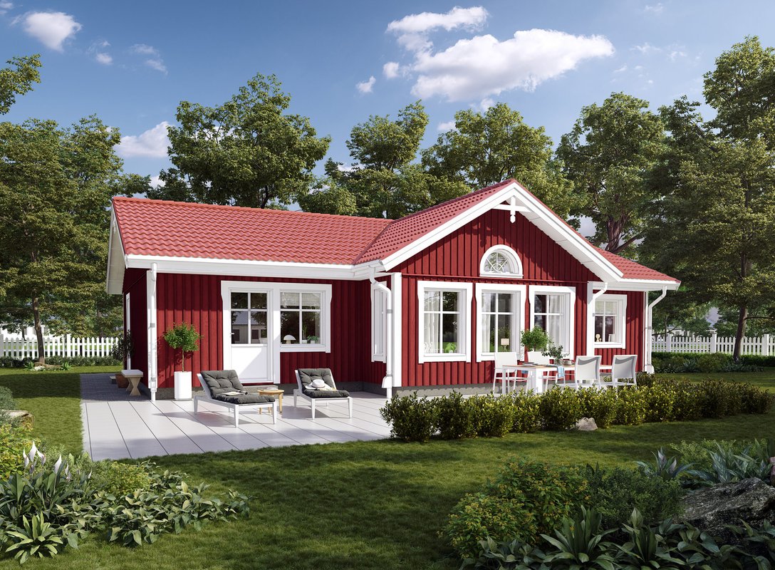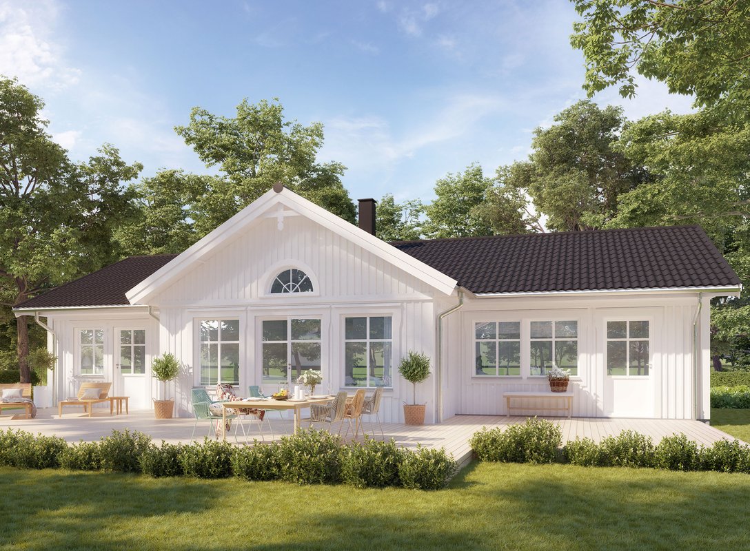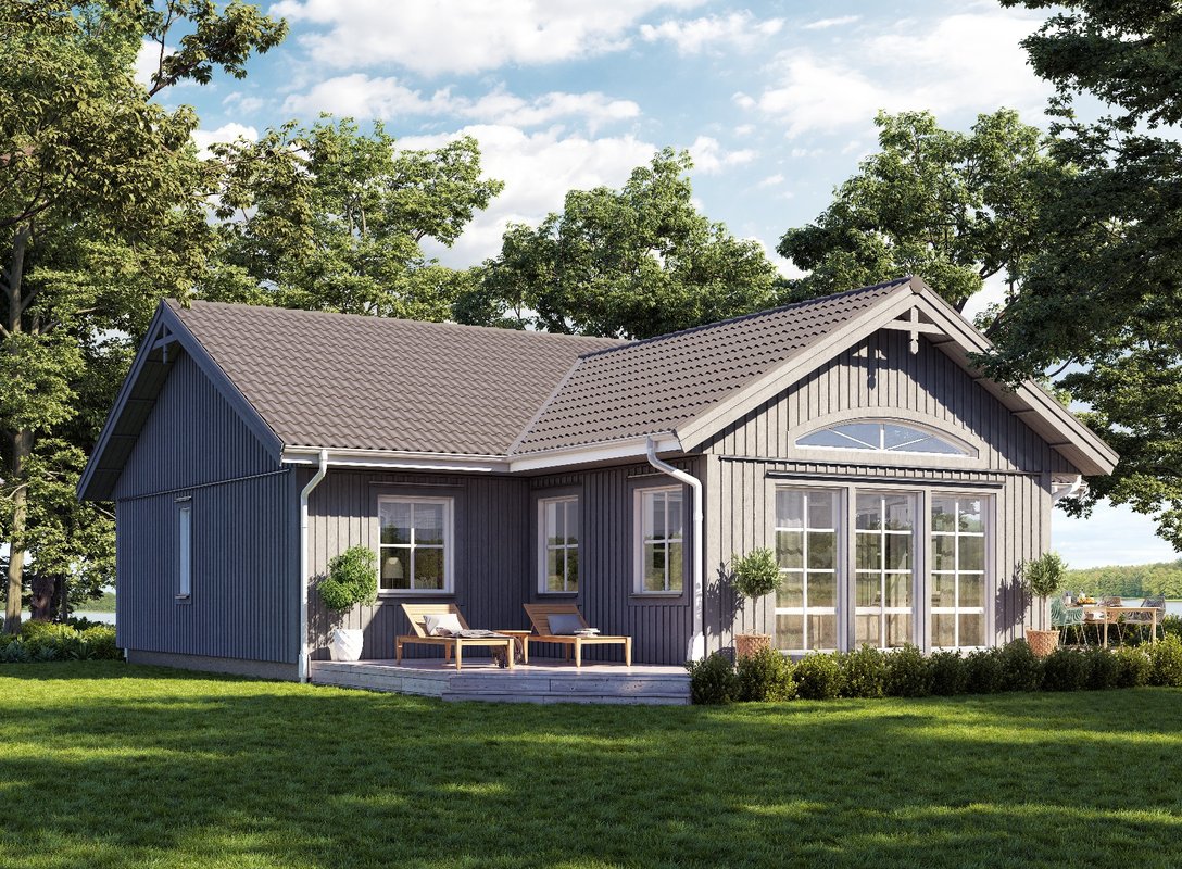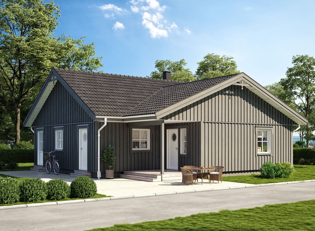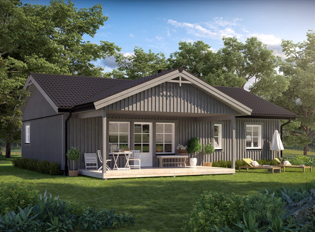 Här ser du hur huset ser ut från alla vinklar. Tycker du att fönsterna är för små eller vill du ha fler dörrar? Kom ihåg att du kan anpassa huset precis som du vill.